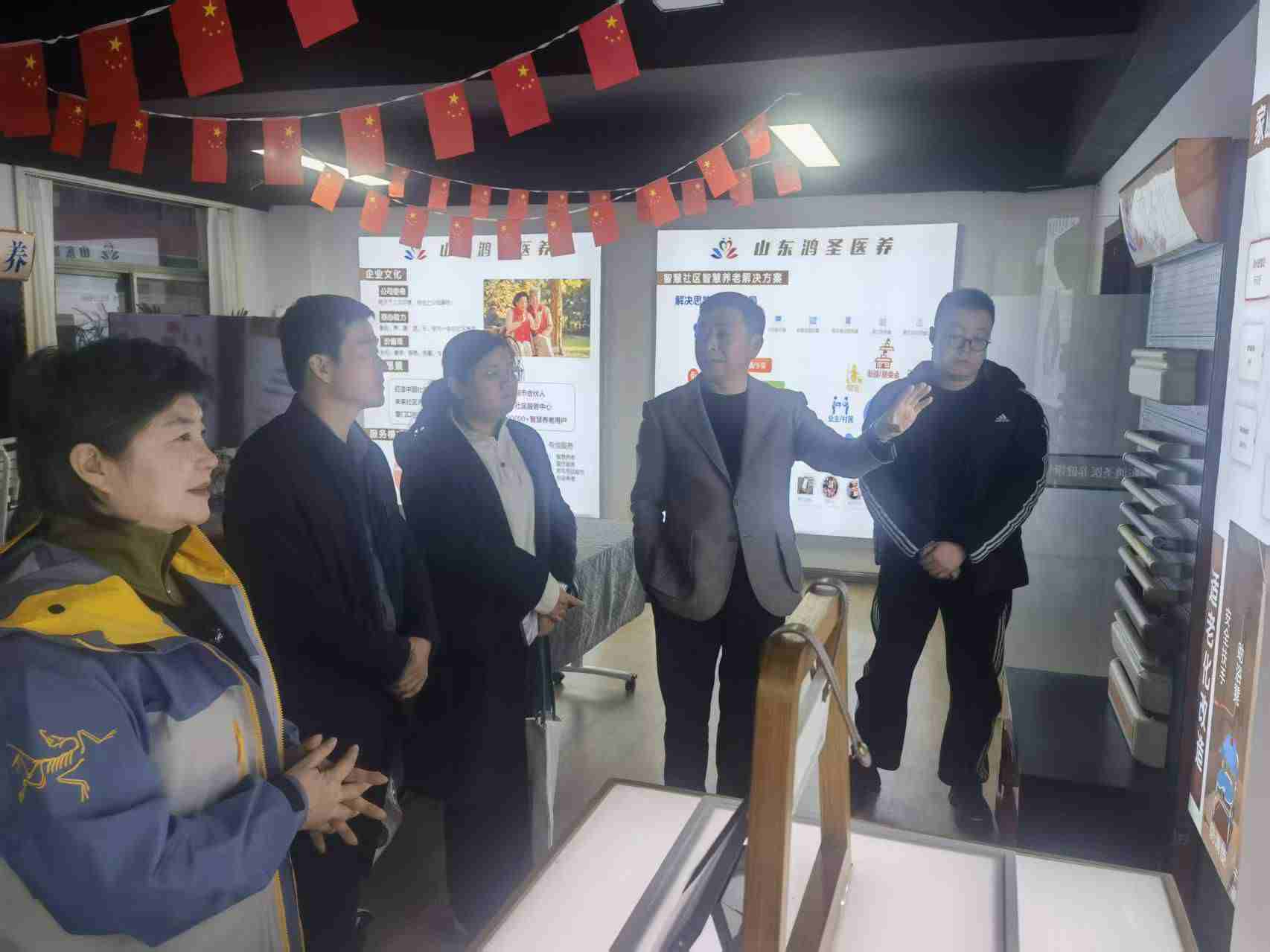 - 考察期间,在张传海董事长的陪同下,姜海洋书记一行先后深入鸿圣康养中心的康养调理区、护理实训区等功能区域,实地察看了中心的运营模式、服务特色及实训设施配置,详细了解了中心在老年康复护理、适老化服务等方面的实践经验,对鸿圣康养秉持“以医助养、以养促医,和而不同、逸养山东”的企业理念,构建的“医-养-社-家”四位一体服务模式给予高度评价。